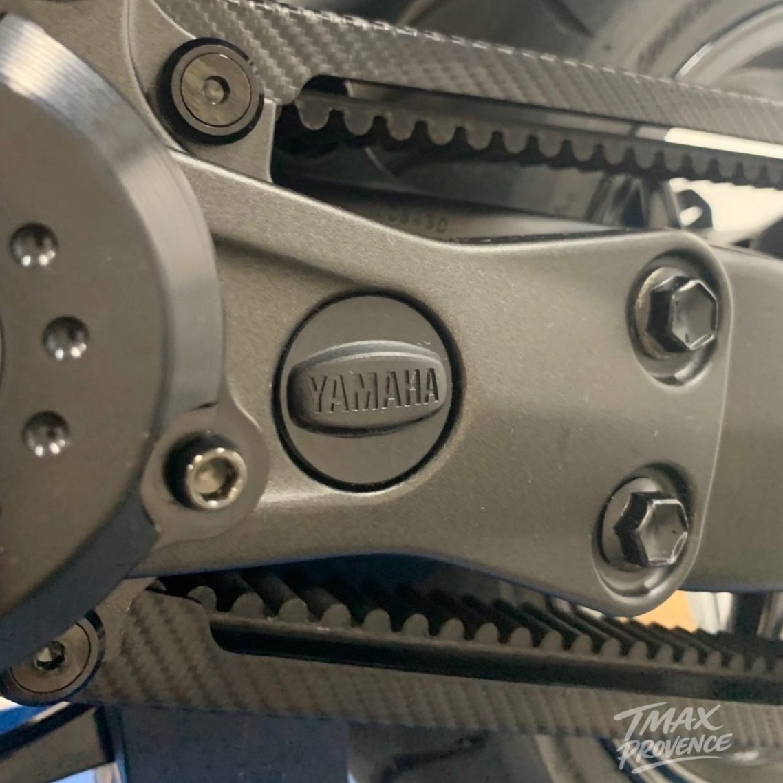 Cet emblème 3D ajoute une touche esthétique au niveau de la platine transmission gauche de votre T-Max.